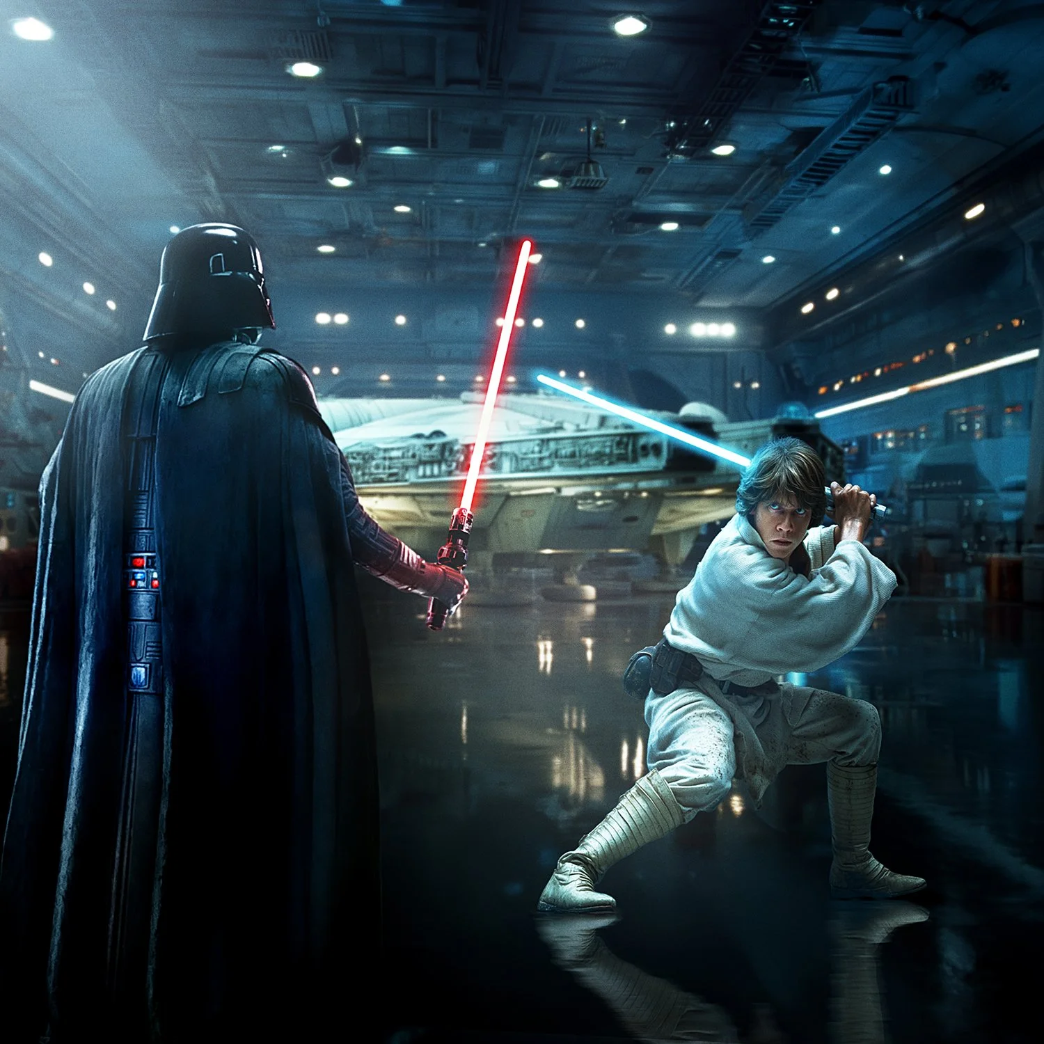 Mostly retouching and compositing on this image I created from scratch. AI would not create what I wanted all in one as it couldn’t reproduce the angles on the figures I needed, so I used a 3D model of Darth and got the correct angle, then edited him in Magnific AI. The background was generated separately , including the Millennium Falcon. Luke was generated from AI. The lighting, Lukes reflection and the sword glows all done in photoshop.